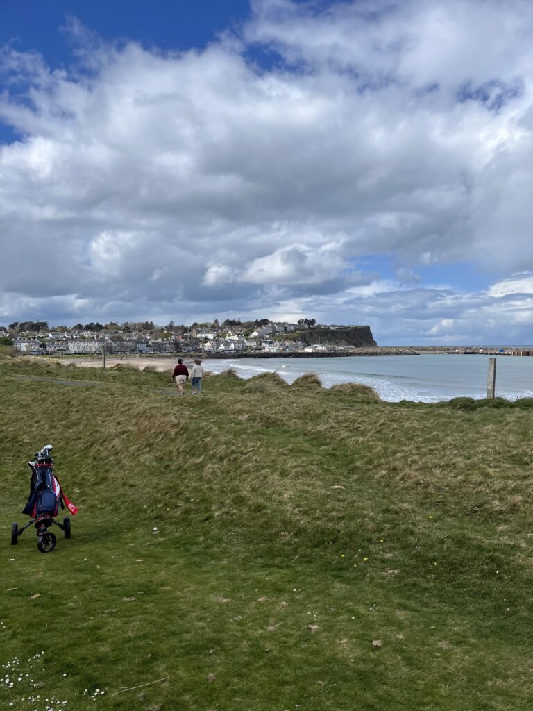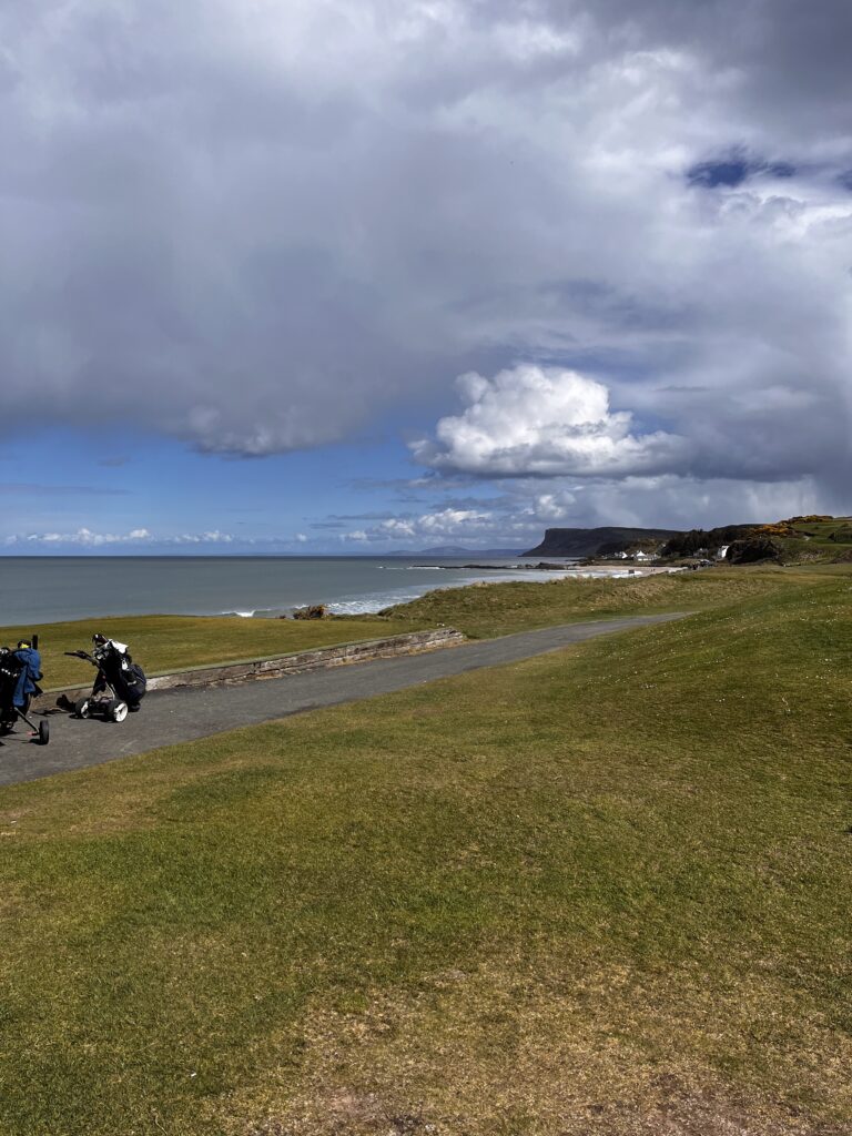 Ballycastle is a fantastic course. with the first 5 holes a parkland layout it doesn’t really reveal what the course truly becomes until you cross the road where the rest of the course is a links style layout which initially hugs the coastline before returning to the town again. I found the holes by the water simply stunning. the par 3 9th (I think!) up the hill. maybe only 120 yards but I can imagine on somedays you may take a mighty hit in the wind to get it there!!!